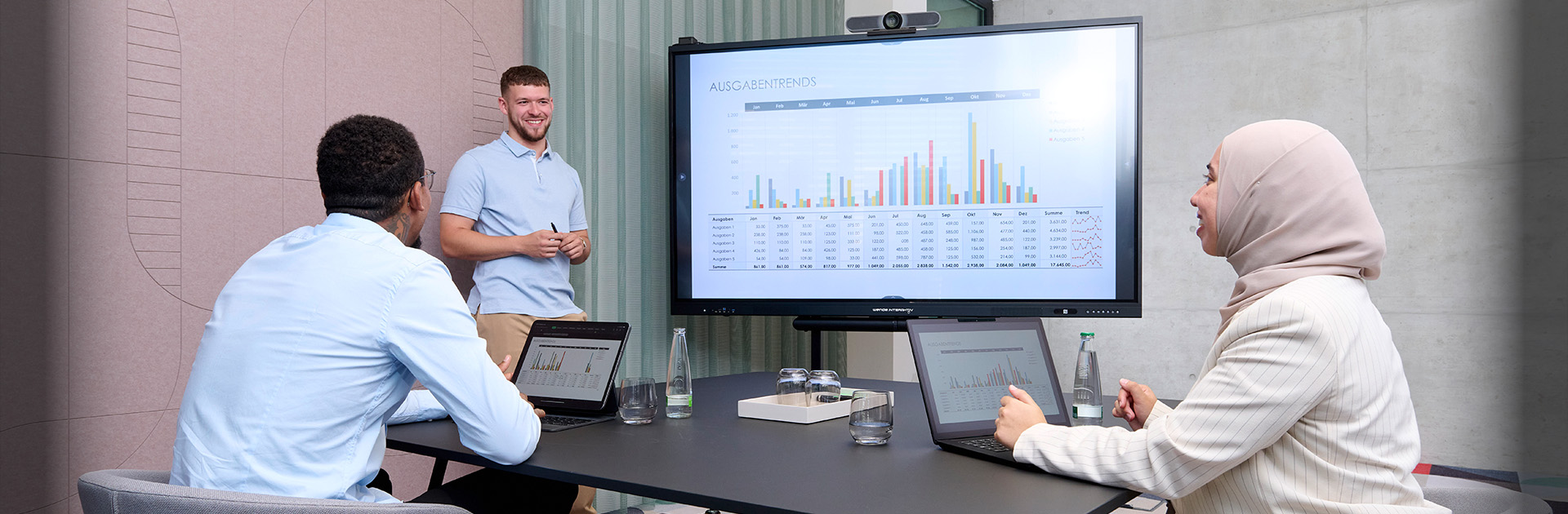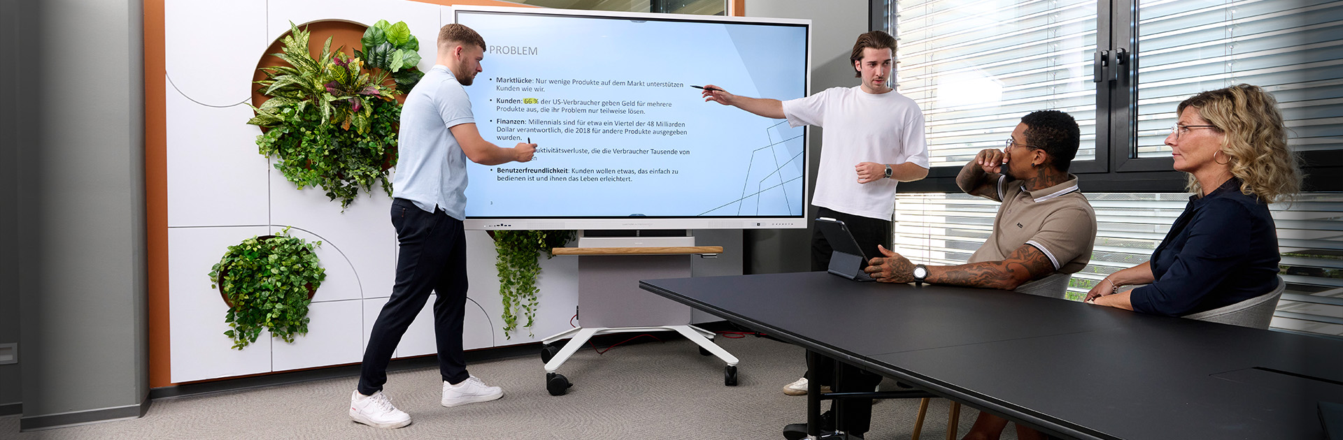 Ob im Klassenzimmer, im Konferenzraum oder im Showroom – unsere interaktiven Displays machen Inhalte greifbar, fördern Zusammenarbeit und schaffen echte Erlebnisse. Einfach zu bedienen, vielseitig einsetzbar und immer klar in der Wirkung.