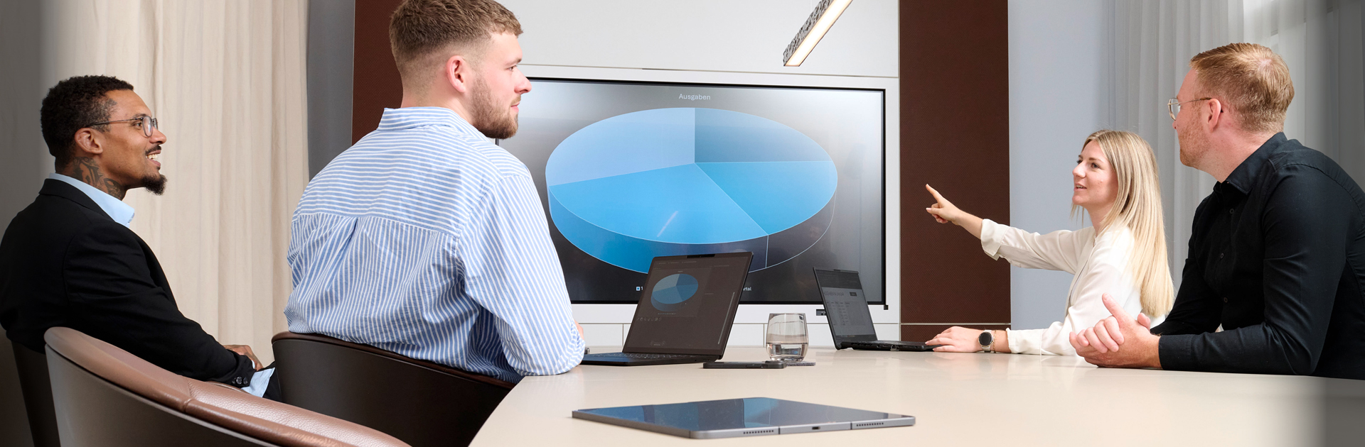 - Besprechungsräume und Sitzungssäle: Agile Meetings, Präsentationen und hybride Teams effizient unterstützen.