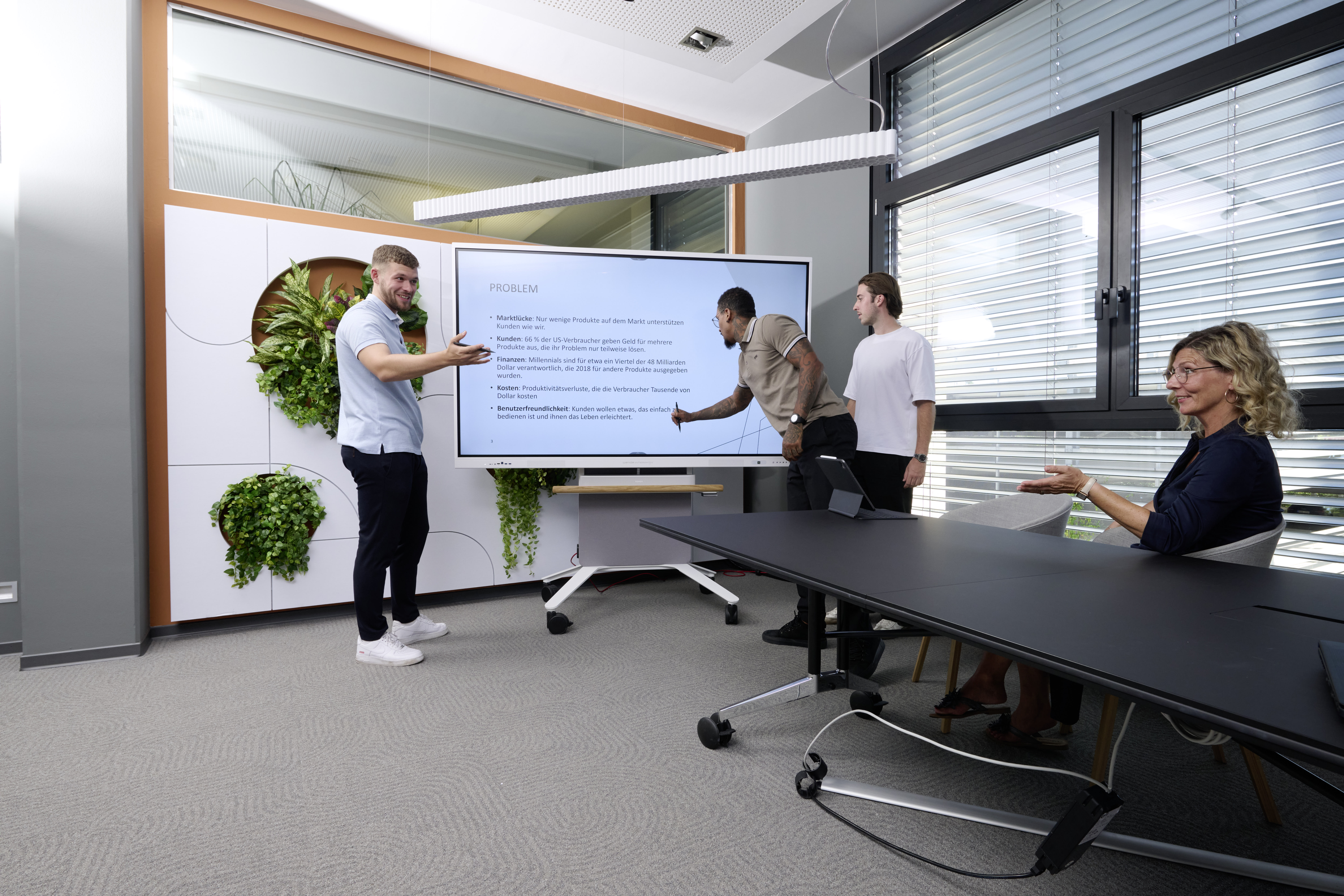 Dank automatischer Stift- und Fingererkennung können alle Teilnehmer sofort mitarbeiten, ohne lange Einweisungen. Ergebnisse stehen unmittelbar digital zur Verfügung, und externe Teilnehmer lassen sich mühelos in die Besprechungen einbinden. So wird die Zusammenarbeit einfacher, der Austausch reicher und produktiver.