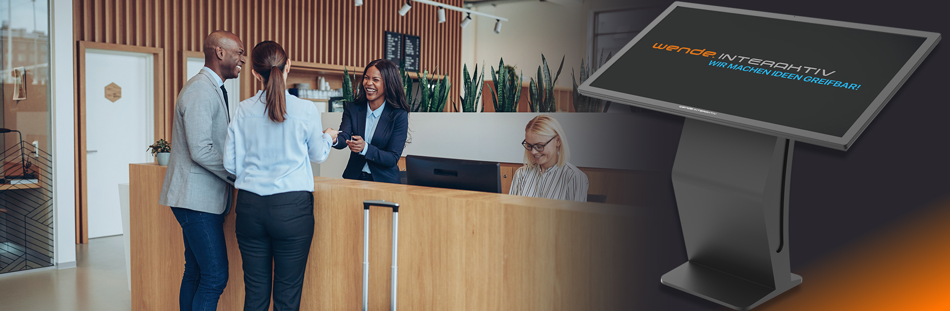 Verwandeln Sie Ihre Tagungsräume und Lobby-Bereiche in moderne, interaktive Erlebnisräume: Unsere großformatigen Touchscreens bereichern nicht nur den Aufenthalt Ihrer Gäste, sondern unterstützen auch die Arbeit Ihrer Mitarbeiterinnen und Mitarbeiter.